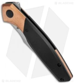 - Black steel liner lock with a copper backspacer.