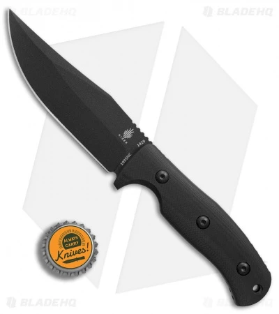 - Black coated 1095HC steel blade in a versatile bowie style.
