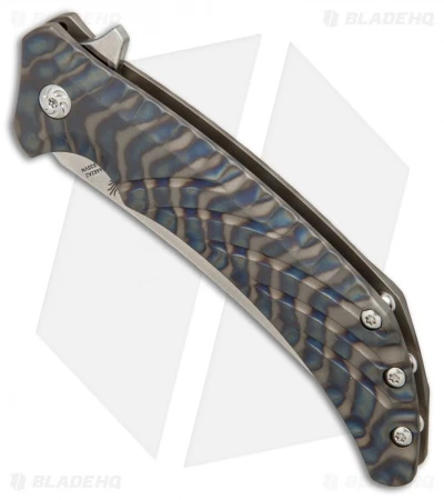 The Kizer Nomad Flipper features a Dirk Pinkerton design inspired by the middle-eastern Khanjar dagger. It is outfitted with a stunning upswept blade that fits perfectly with the contoured lines of the titanium handle. The blade is made from satin finished CPM-S35VN steel and comes with a thumb stud and flipper for quick deployment. Elegant contouring and machining accentuate the flamed titanium handle. Includes a tip-up carry pocket clip for right hand use. The Kizer Nomad offers the blade control and versatility that are essential to a good folding knife.
