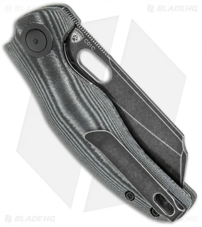 This Blade HQ Exclusive Kizer Vanguard Sheepdog features a black stonewashed blade and a black micarta handle.